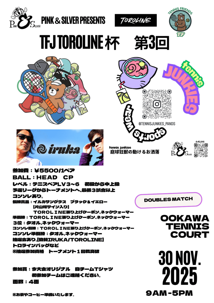 PINK & SILVERがスポンサー・運営として携わるテニスイベント「TFJ TOROLINE杯 」が、2025年1月18日(日)初級~初中級